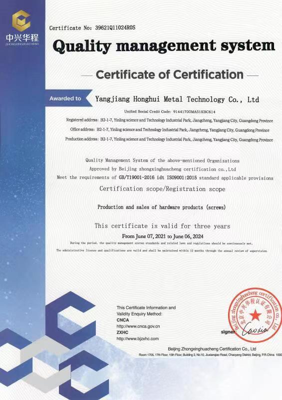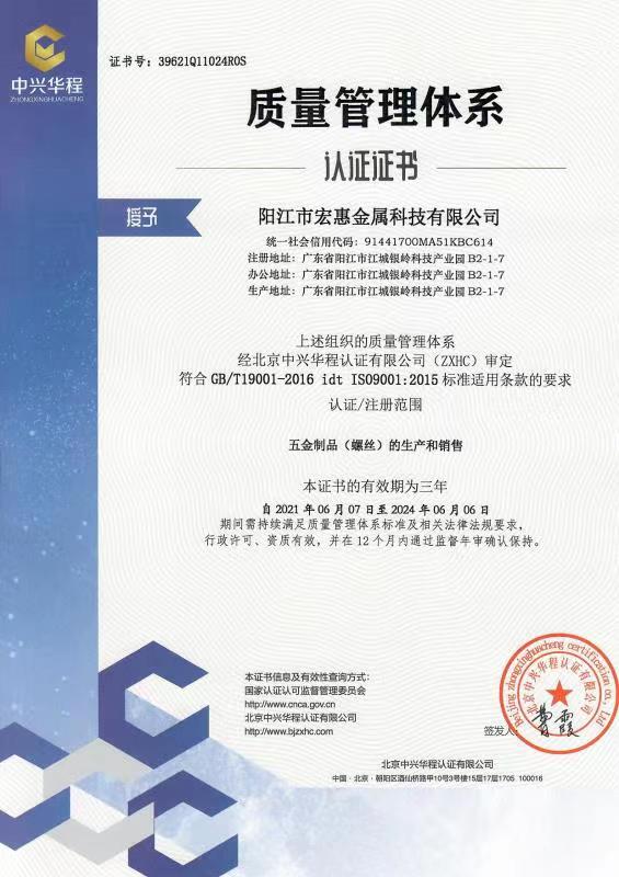 廣東宏惠金屬公司是家20多年一直專注鉆尾螺絲開發(fā)與生產(chǎn)的企業(yè),是國內(nèi)較早做鉆尾的廠家之一,同時(shí)也是國內(nèi)專業(yè)開發(fā)生產(chǎn)鉆尾螺絲的企業(yè)之一。 我司地址為于廣東省陽江市江銀嶺科技園距沈海高速白沙出口不到2公里,距陽江高鐵站也只有十余公里交通便利。 公司占地120畝,擁有超500臺套專業(yè)設(shè)計(jì) 生產(chǎn) 檢測設(shè)備。一個超200人的專業(yè)團(tuán)隊(duì),能夠嚴(yán)格按照ISO9001質(zhì)量體系要求生產(chǎn)符合GB DIN AS3566 ANSI JIS BS等標(biāo)準(zhǔn)的產(chǎn)品,生產(chǎn)銷售各種高品質(zhì)緊固件系列產(chǎn)品,為中高端客戶提供優(yōu)質(zhì)服務(wù)。也可按照客戶要求設(shè)計(jì)生產(chǎn)各種鉆尾,年產(chǎn)高品質(zhì)碳鋼 不銹鋼鉆尾螺絲2萬余噸.在各大客戶的鼎力支持下產(chǎn)品暢銷全國,并遠(yuǎn)銷亞 非 拉 歐等地,在這20多年發(fā)展的道路上我司堅(jiān)持“以質(zhì)量求生存,以信譽(yù)求發(fā)展”的精神理念不斷完善公司體系。